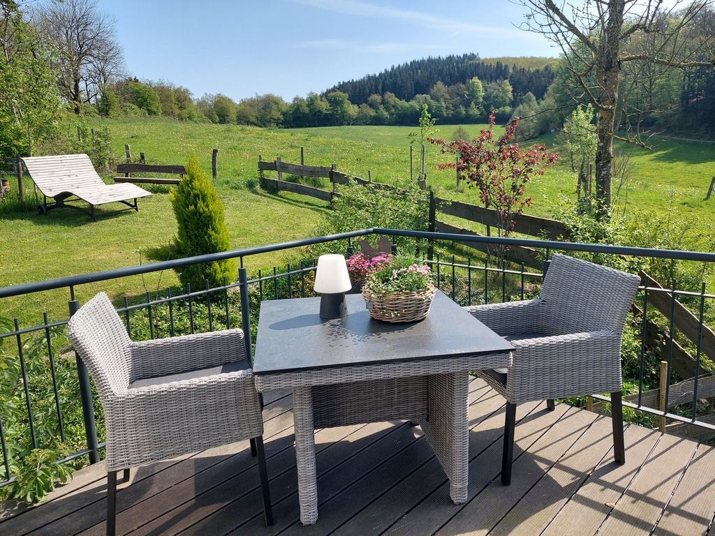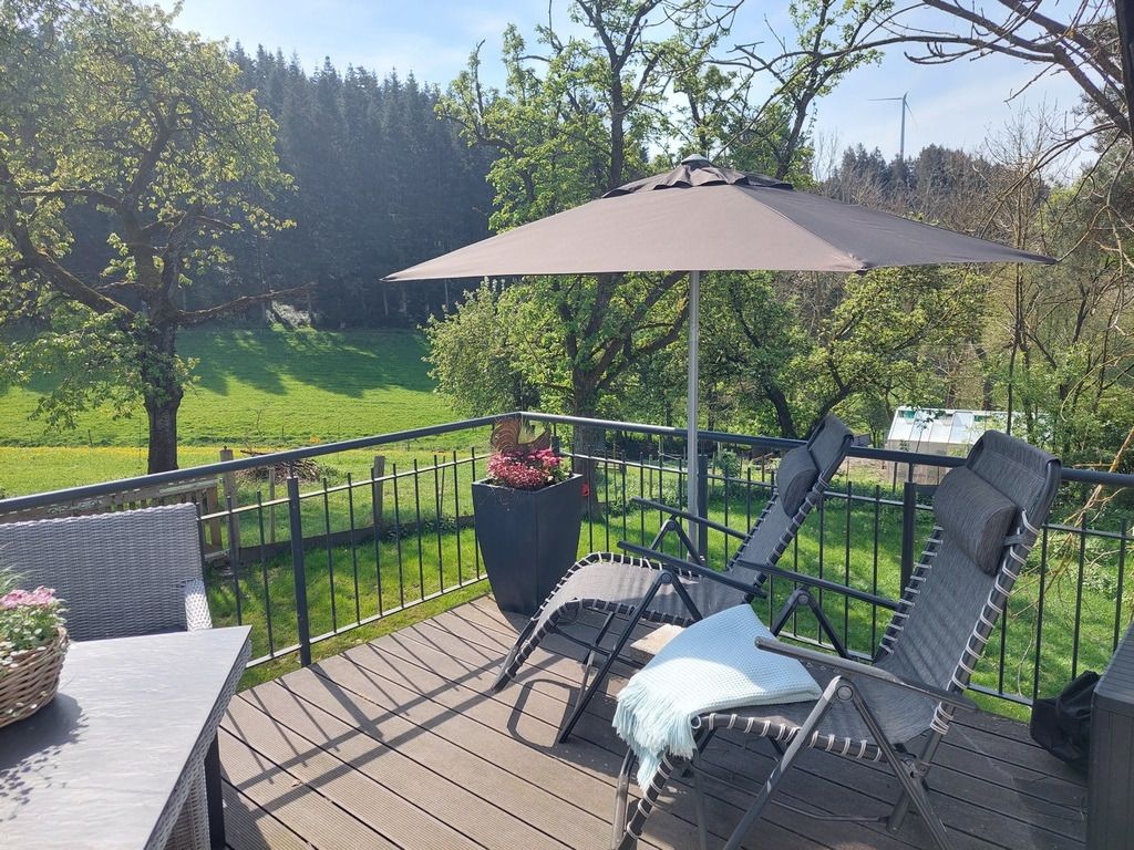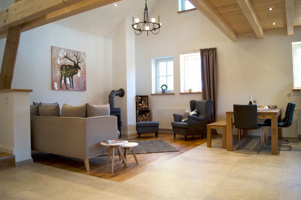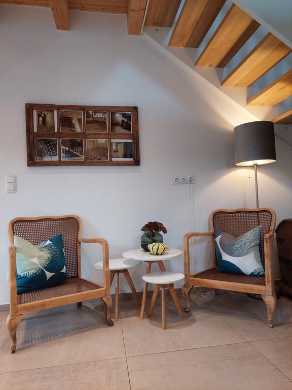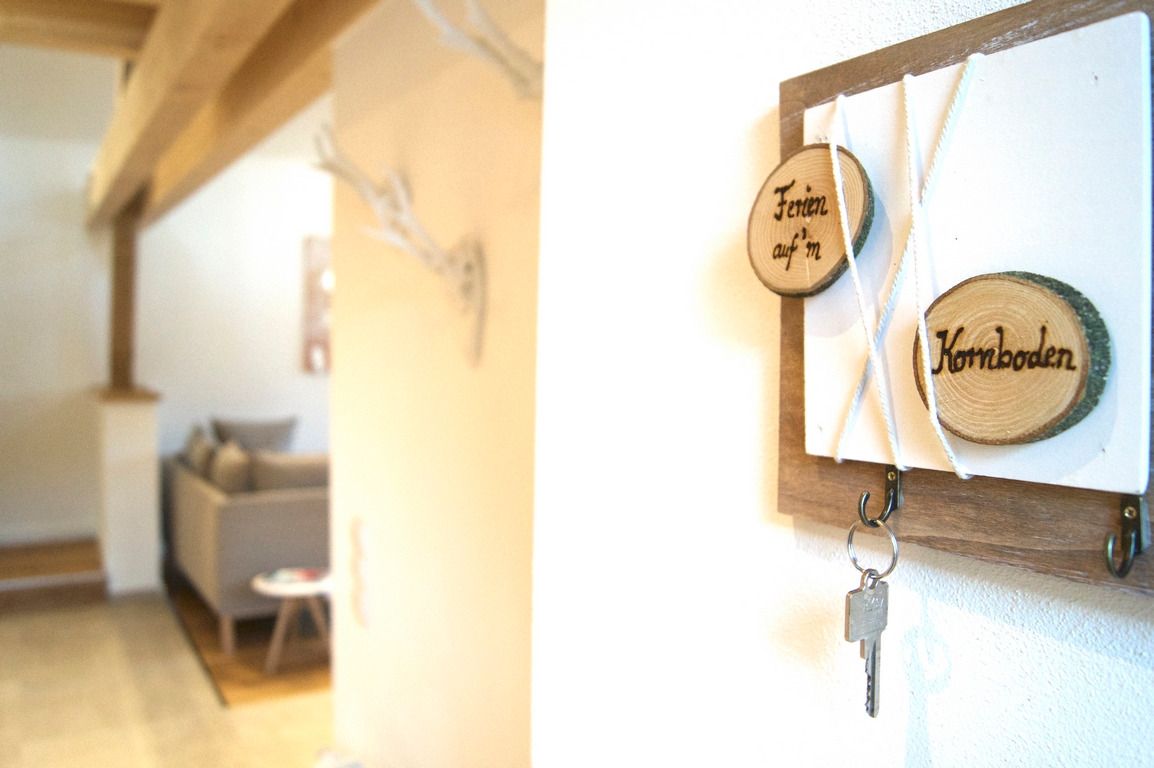 Unsere Ferienwohnung "Auf´m Kornboden" ist über eine Treppe im Außenbereich erreichbar und befindet sich in der ersten Etage. Die große Terrasse mit Süd-Ost-Ausrichtung eignet sich im Sommer hervorragend für ein Frühstück im Freien, gemütliche Grillabende oder den Glühwein-Schlummertrunk zu der kälteren Jahreszeit.