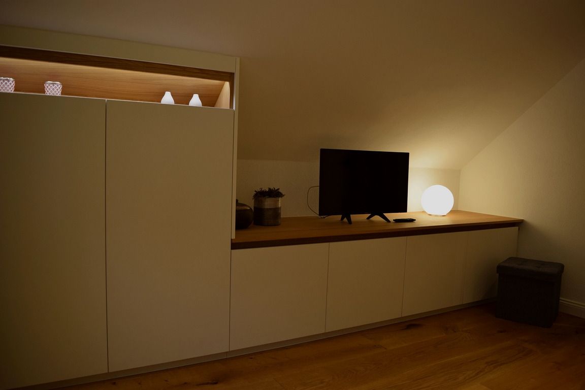 Die 60m2 große Wohnung bietet darüber hinaus neben einem großen Wohn-Essbereich mit TV und gemütlichem Kamin, ein Schlafzimmer mit motorisiertem Boxspringbett und TV und ein Tageslichtbad.